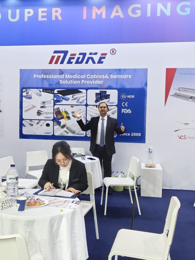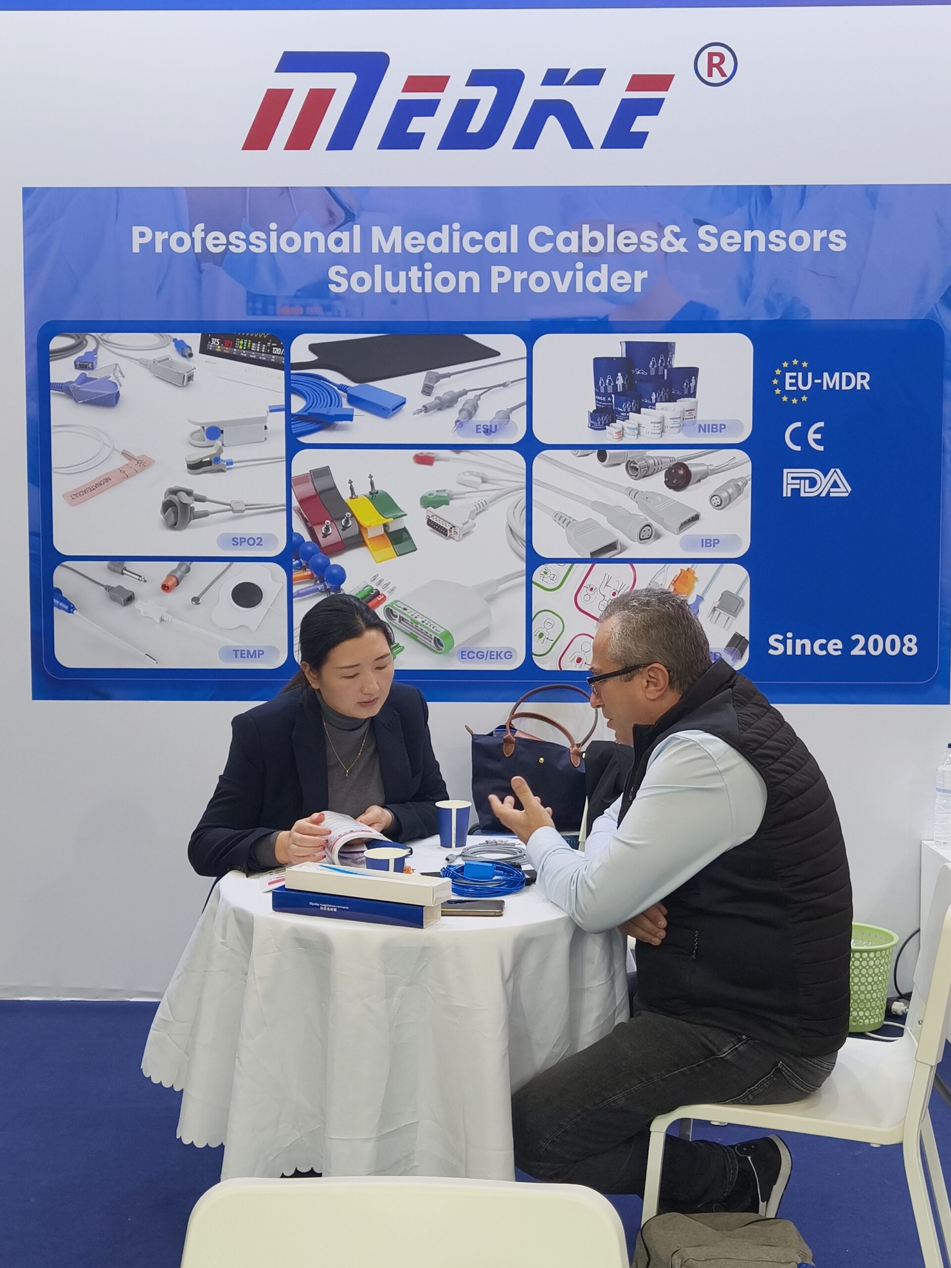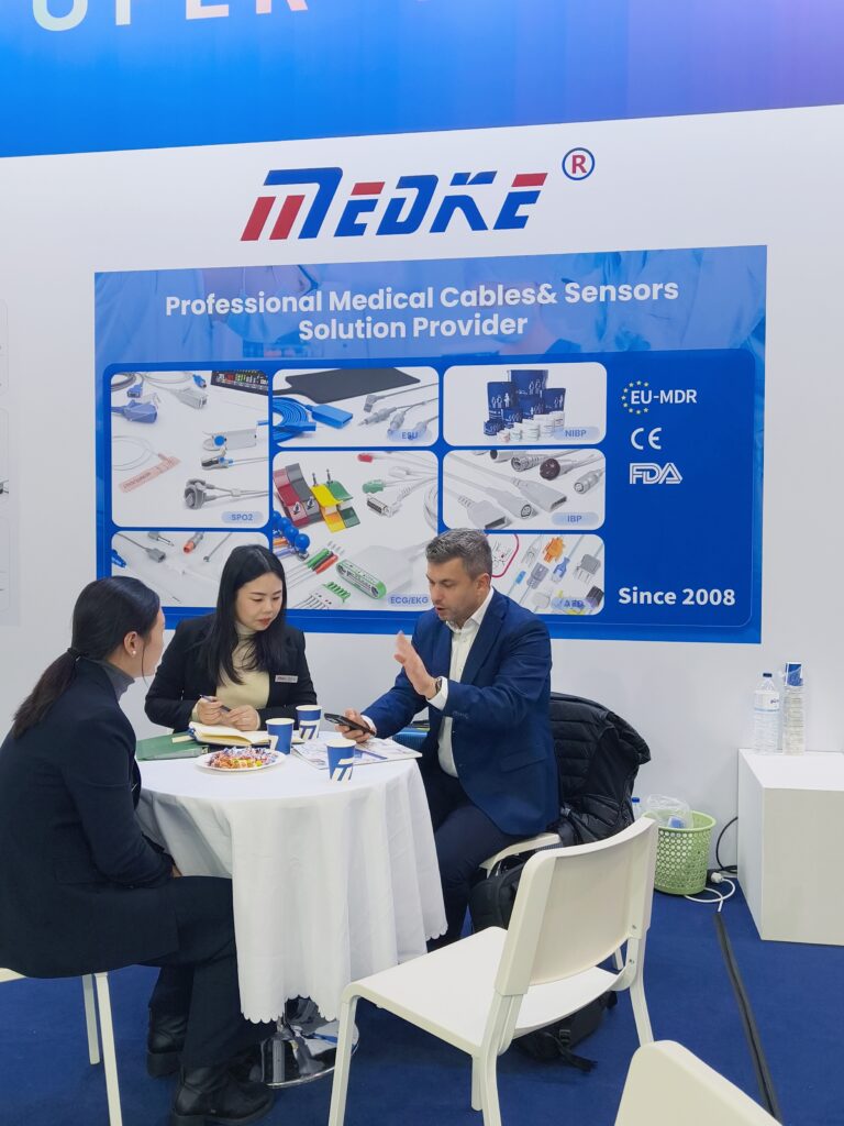 Ubicado en el Hall 9 / E06, el stand de Medke atrajo la atención continua de compradores, distribuidores y profesionales de la salud de todo el mundo, gracias a su exhibición integral de soluciones innovadoras de accesorios para el monitoreo de pacientes, incluidos sensores de SpO₂, cables de ECG, transductores IBP, sondas de temperatura, manguitos NIBP y servicios OEM/ODM personalizados.